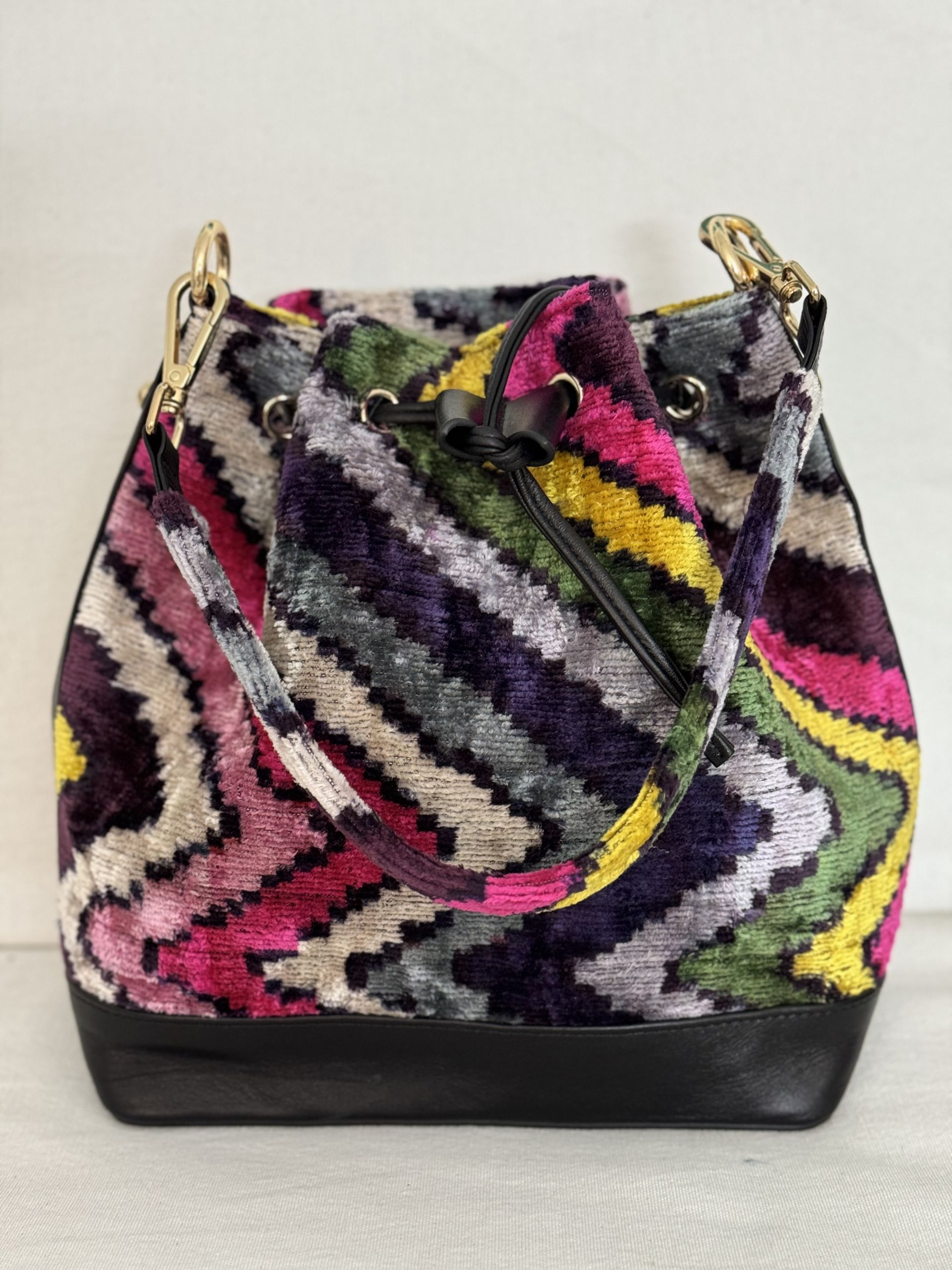 Bolso bombonera  en terciopelo seda tejido sobre una base de algodón 100% natural.